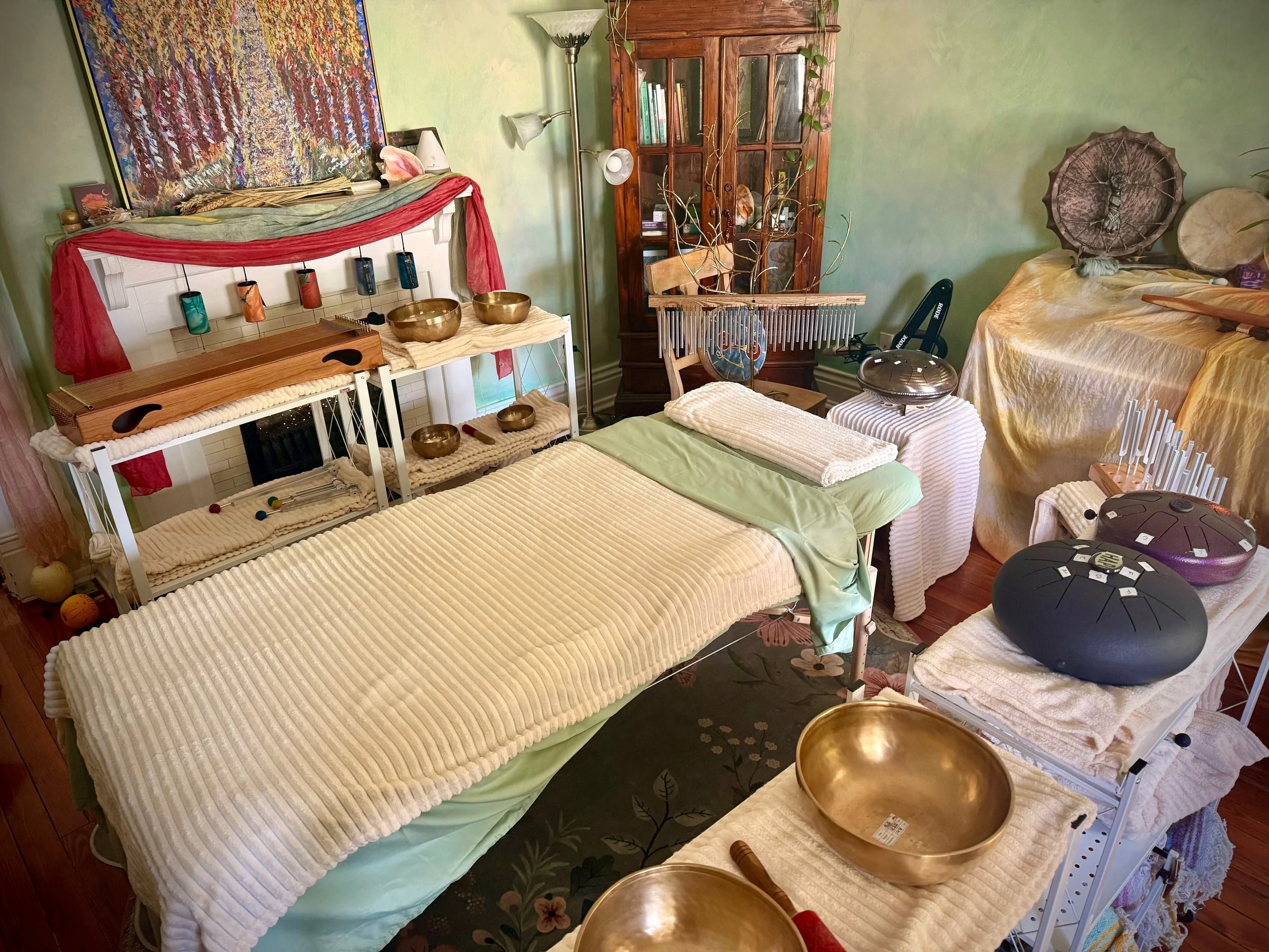 For transformational sound journeys, you’ll need to complete some intake forms (links will be sent with your appointment confirmation). We’ll discuss your responses at the beginning of your session.